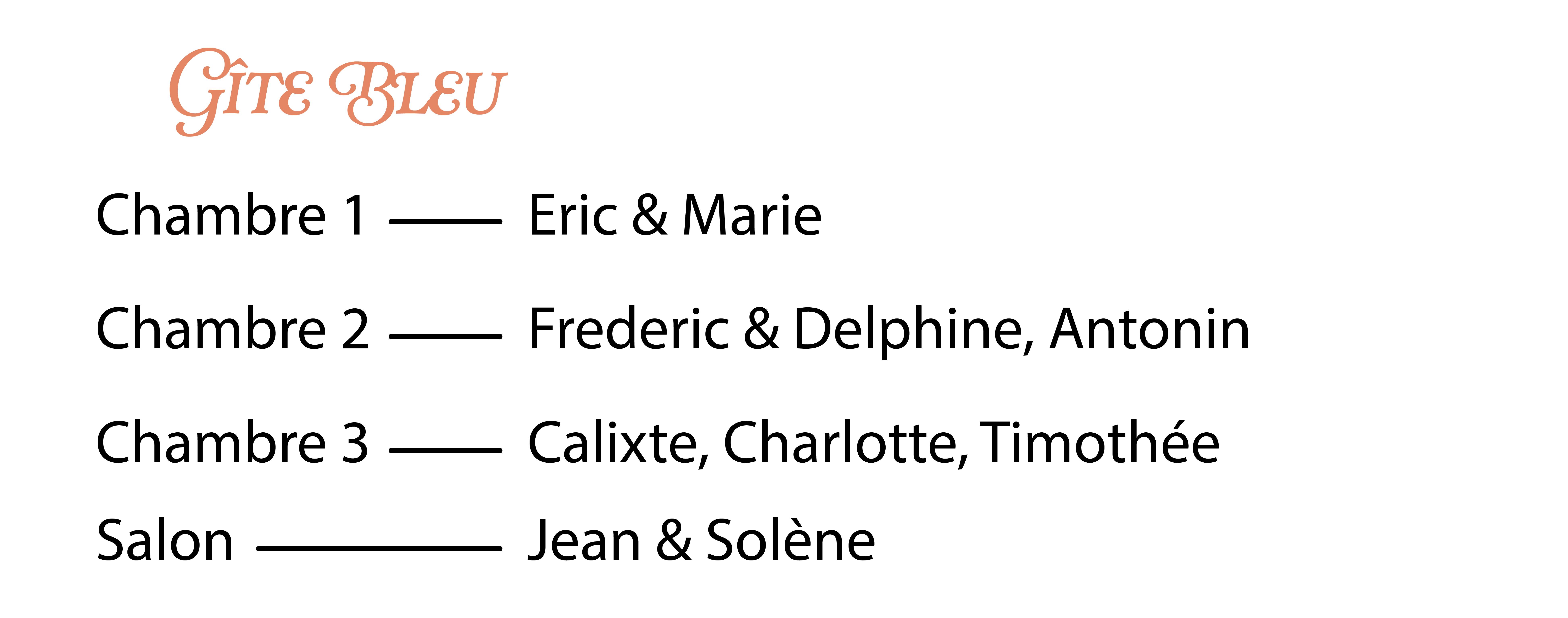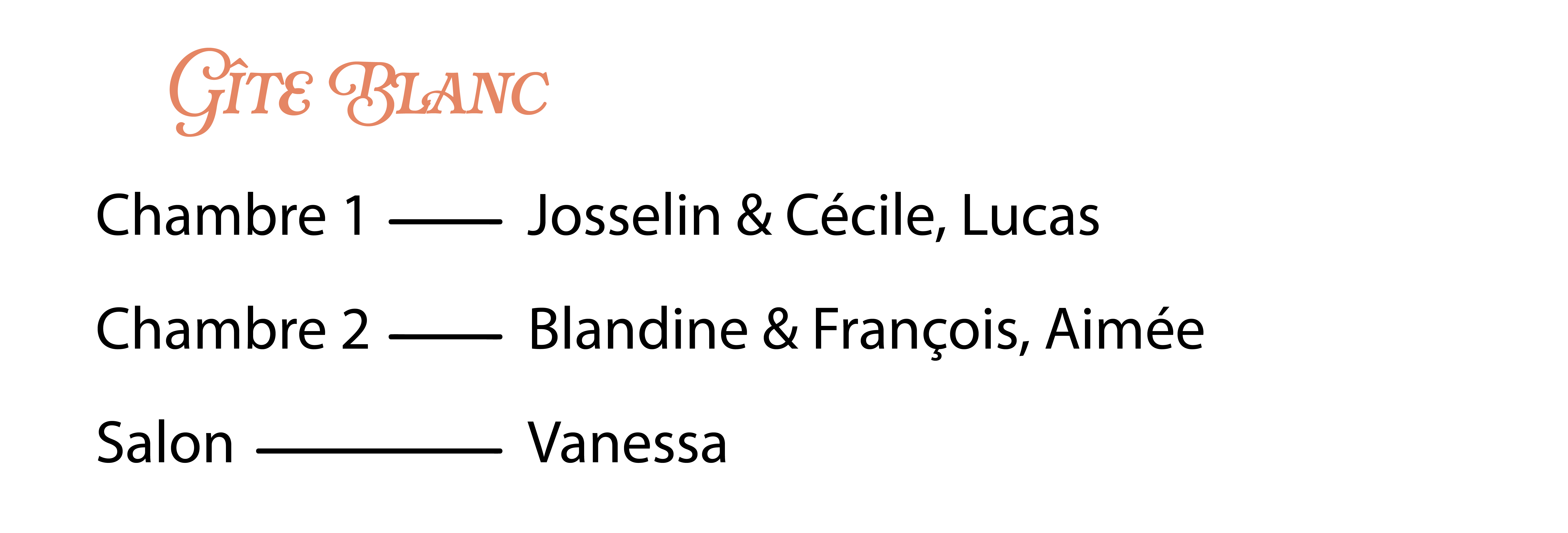 Pour tous ceux qui avaient choisi de dormir sur place au gîte, vos places ont été réservées. Aucun drap n'est à apporter, mais prévoyez vos serviettes. Les plans de chambres sont prêts, nous vous indiquerons où vous installer à votre arrivée.